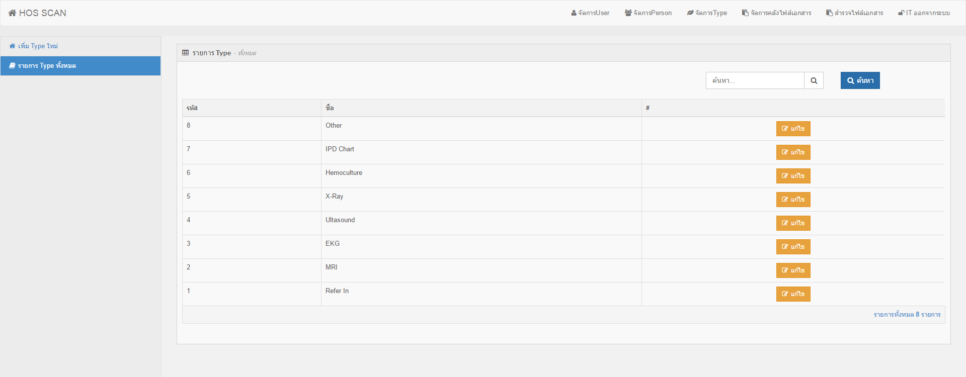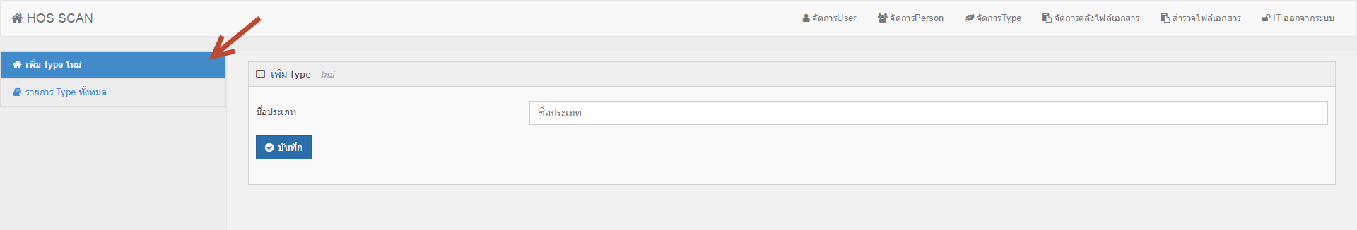 1. เมื่อล็อกอินเข้าสู่ระบบแล้วให้ทำการคลิกที่เมนู จัดการ Type คุณจะพบหน้าจอ ดังภาพ