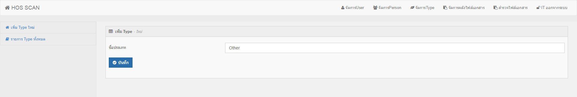 2. เมื่อคุณต้องการเพิ่ม Type ใหม่ ให้ทำการคลิก เพิ่ม Type และให้กรอกรายละเอียดดังภาพ แล้วกดบันทึก